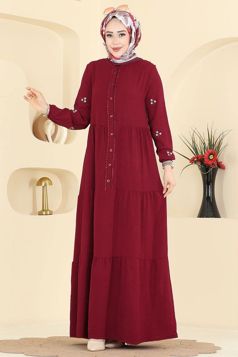 Kolları Nakışlı Aerobin Elbise 5572ZNN863 Bordo