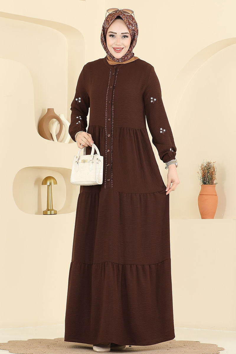 Kolları Nakışlı Aerobin Elbise 5572ZNN863 Kahve