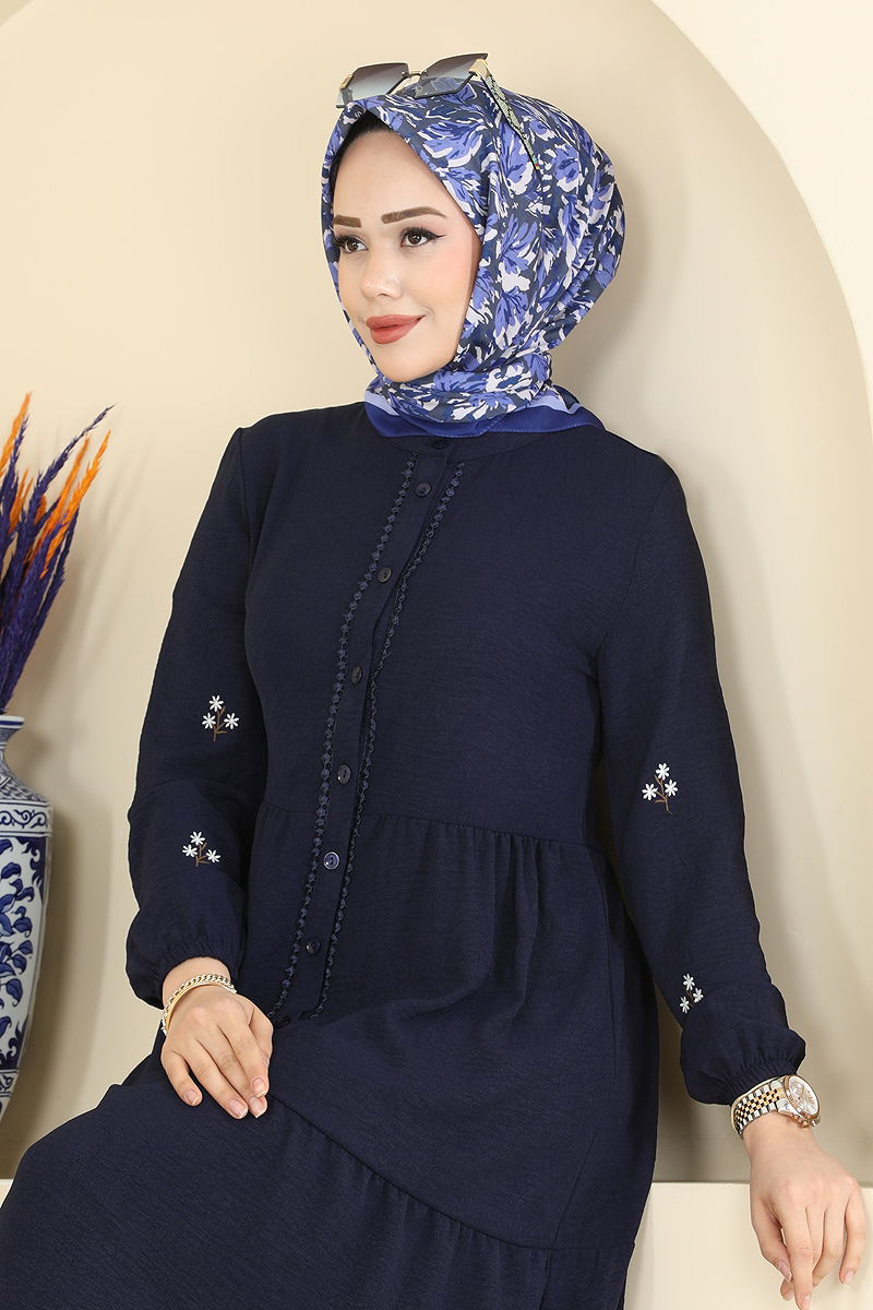 Ürün Özelliği : Yeni sezon tesettür moda ürünüdür. Ürün Yarım Hakim yakadır. Ürün Önden kullanılabilir yarım düğmelidir. Ürün Etek kısmından volanlıdır. Astarsızdır. Nakış detayları dikilidir. Manşet lastiklidir.Konsept fotoğraf çekimlerinden dolayı üründe ton farklılığı olabilir.