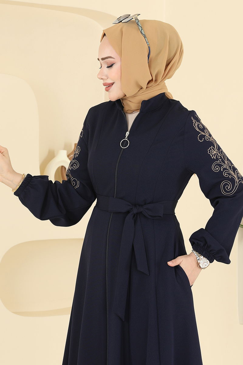 Ürün Özelliği : Yeni sezon tesettür moda ürünüdür. Ürün Yarım Hakim yakadır. Astarsızdır. Ürün Önden fermuarlıdır. Nakış detayları dikilidir. Kemer ürüne dahildir, isteğe bağlı kullanılmayabilir. Cep mevcuttur. Manşet lastiklidir.Konsept fotoğraf çekimlerinden dolayı üründe ton farklılığı olabilir.