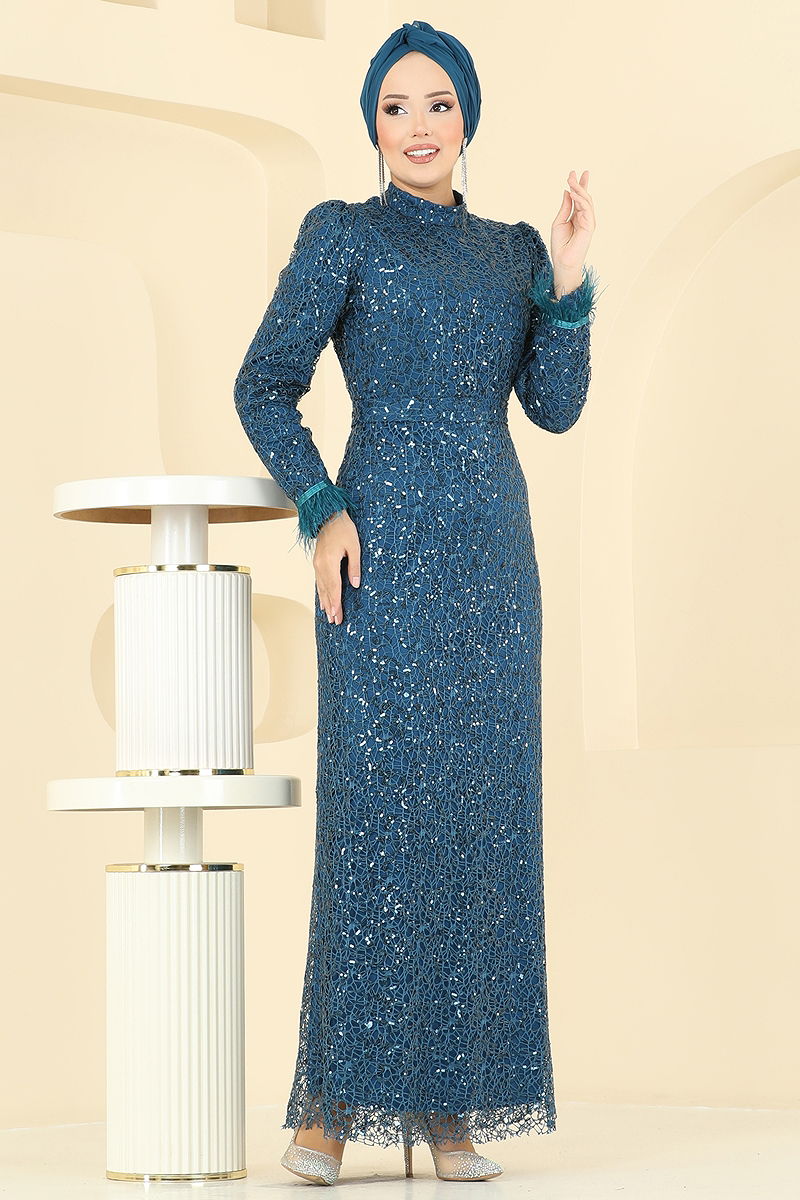 Göz alıcı ve şık bir görünüm için tasarlanan Kolları Otriş Detaylı Abiye, özel günlerinizde size eşlik edecek mükemmel bir seçim. Bu tesettür abiye, her mevsim tercih edebileceğiniz çok yönlü bir üründür. Yalnızca kuru temizleme ile bakımı yapılabilir olan bu elbise, pul payet kumaşıyla parıldarken, otriş detaylı kollarıyla da dikkat çekiyor. Yarım hakim yakası ve sırttan fermuarlı tasarımıyla hem şık hem de kullanışlıdır. Ayrıca astarlı yapısıyla konforunuzu artırır. Her detayıyla göz kamaştırın.
