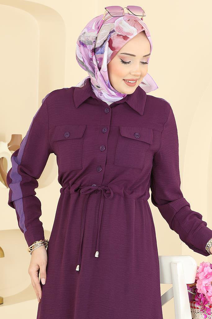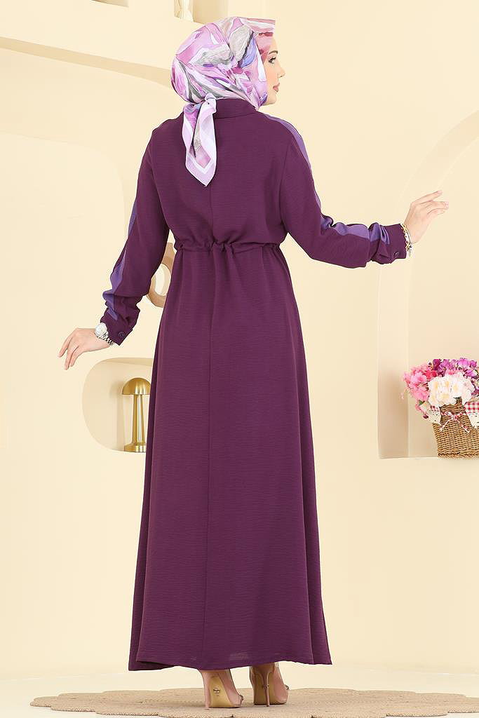 Kolları Şerit Detaylı Elbise PL9209 Mor