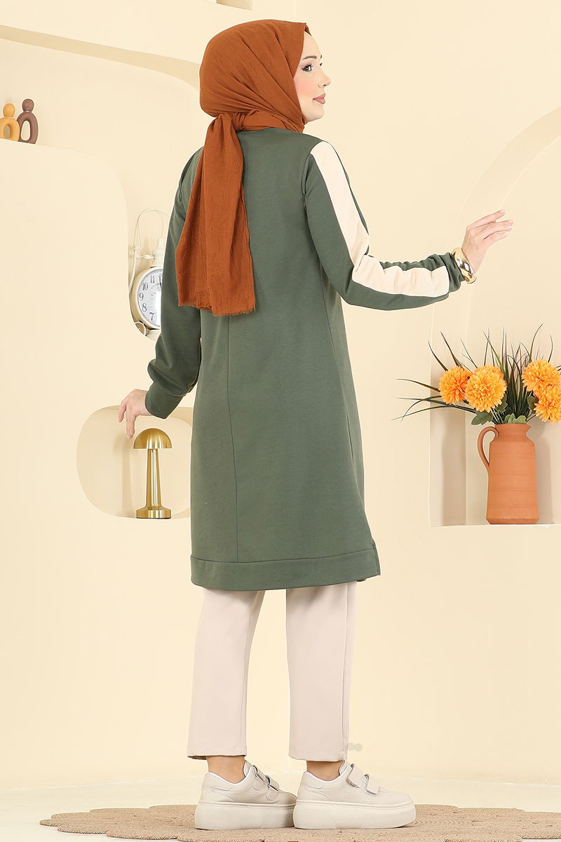 Kolları Şeritli İki İplik Tunik 1006ETT926 Haki