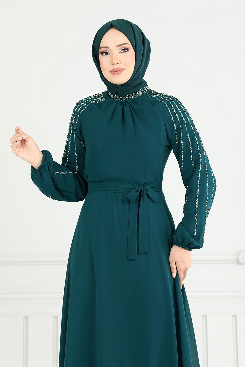 Ürün Özelliği : Yeni sezon tesettür moda ürünüdür. Ürün Yarım Hakim yakadır. Astarlıdır. Ürün Sırttan fermuarlıdır. Taşlar yapıştırmadır. Kemer ürüne dahildir, isteğe bağlı kullanılmayabilir. Manşeti lastiklidir. Konsept fotoğraf çekimlerinden dolayı üründe ton farklılığı olabilir.