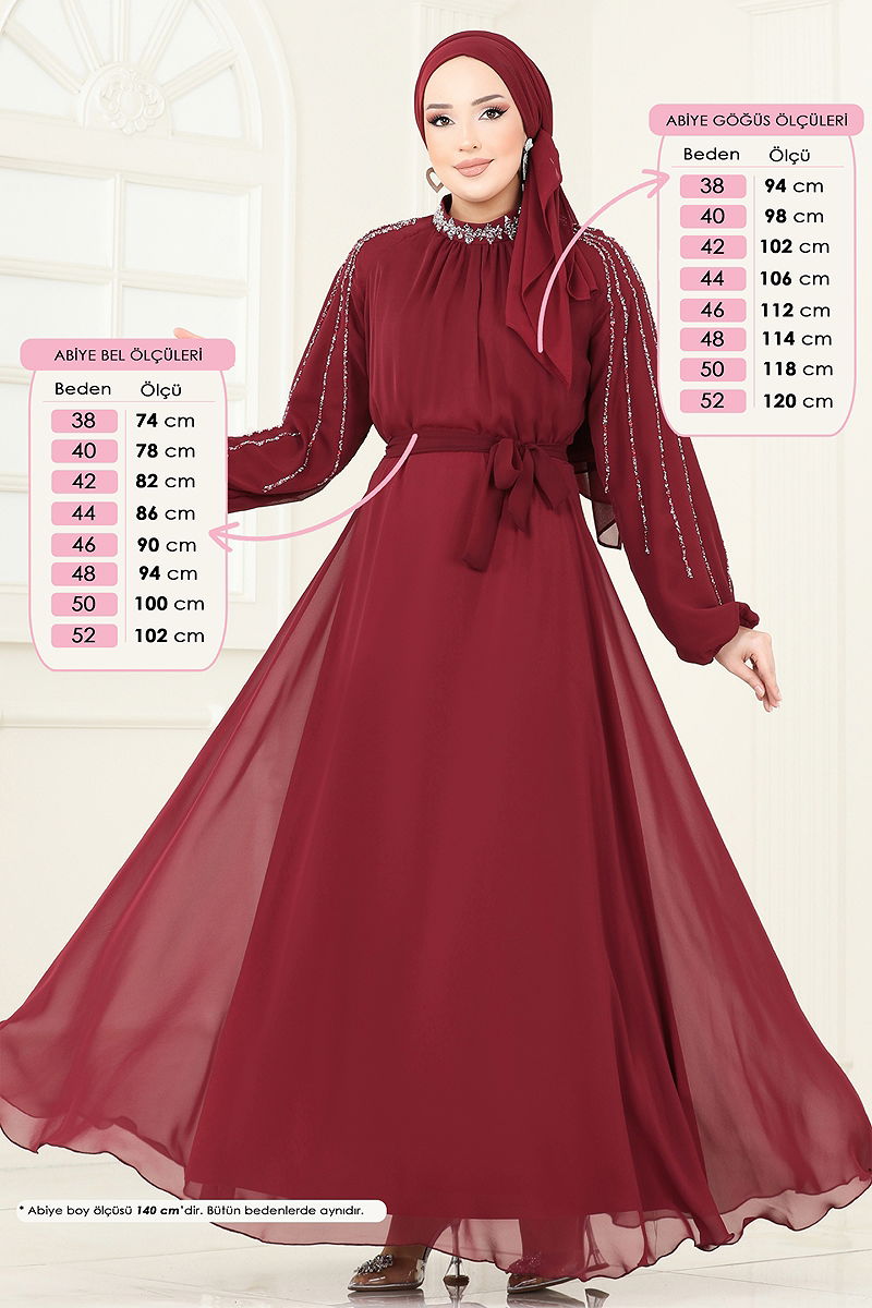 Elegant and stylish, the Bejeweled Sleeve Chiffon Gown is a modest attire suitable for all seasons. This chic dress is made from chiffon and maintained exclusively through dry cleaning, ensuring durability and a classy look. It features a high collar neck and a zipper closure at the back for ease. Adorned with glued jewels on the sleeves, it brings a dazzling shine. The gown includes an integrated belt that can be styled with or without, depending on your preference, and the elastic cuffs offer a comfortable fit. Craft the look you desire with or without the belt.