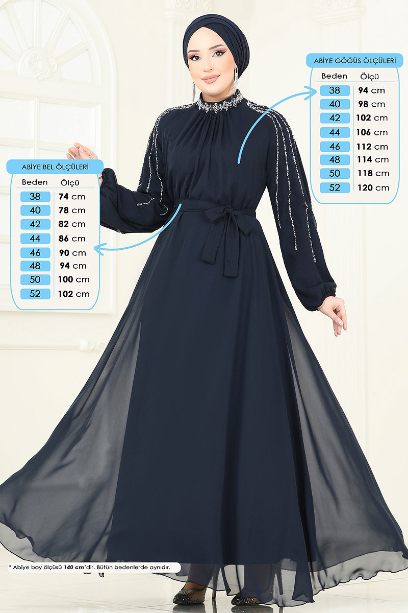 Şıklığı ve zarafeti bir arada sunan Kolları Taşlı Şifon Abiye, tesettür tasarımıyla dört mevsim boyunca keyifle kullanabileceğiniz bir üründür. Kuru temizleme ile bakımı yapılan bu şık abiye, şifon kumaştan üretilmiştir ve yumuşak astarlarıyla konfor sağlar. Hakim yakası ve sırttan fermuar detayı ile pratik bir kullanım sunar. Modelde bulunan yapıştırma taşlar göz alıcı bir ışıltı katarken, dizayna entegre edilmiş kemer sayesinde zarafetinizi tamamlar. Ürün manşeti lastikli olup, rahat bir oturuş sunar. İster kemerli ister kemersiz kullanımıyla farklı stiller yaratın.