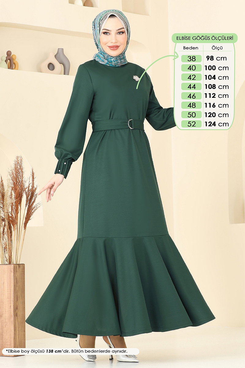 Kolları Taşlı Tesettür Elbise Zümrüt