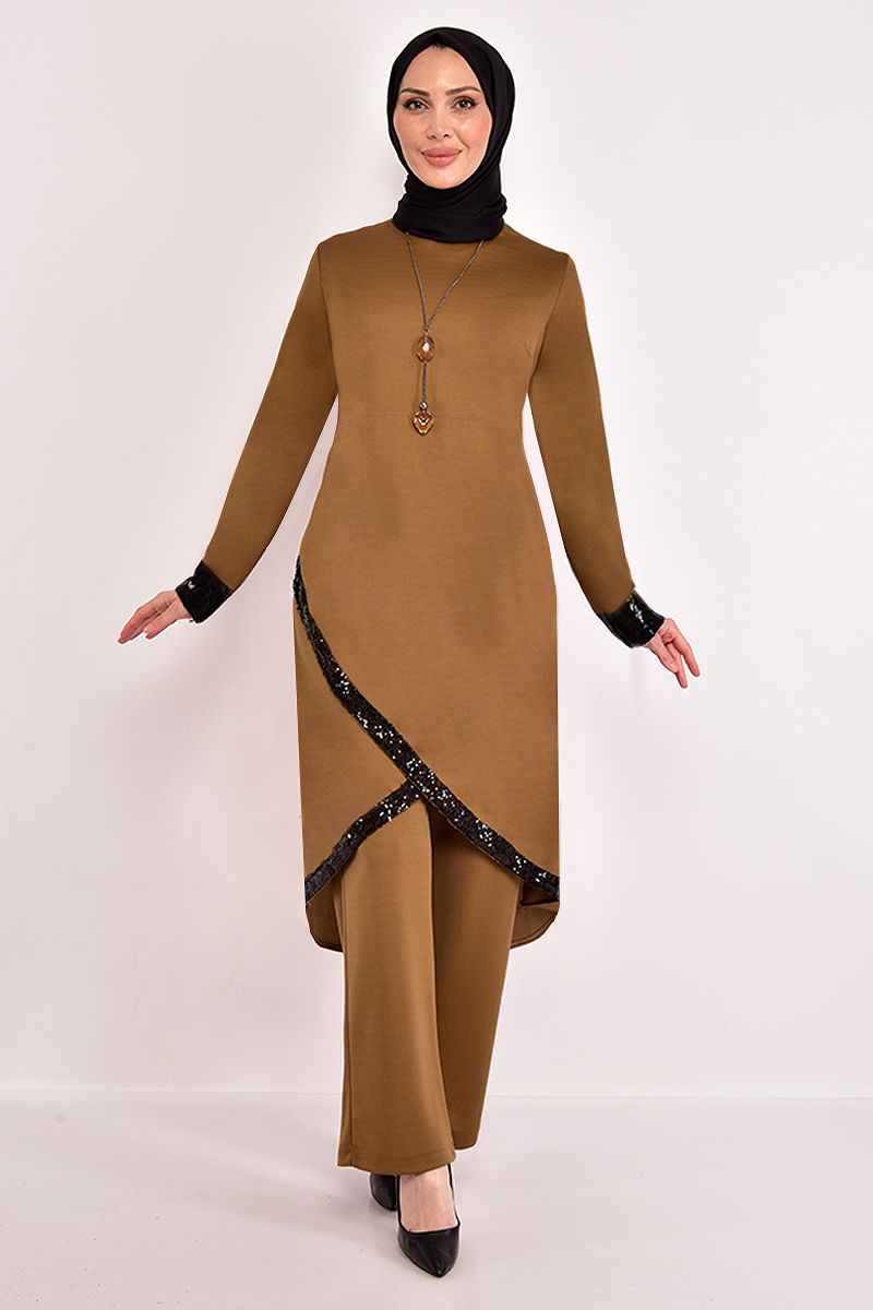 Kolyeli İkili Takım ASM2559-M Açık Taba