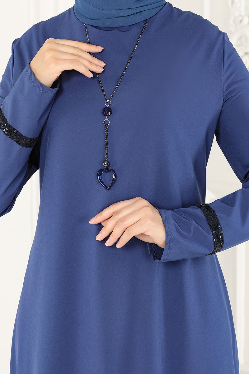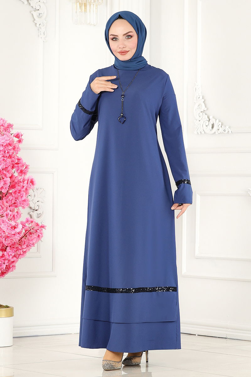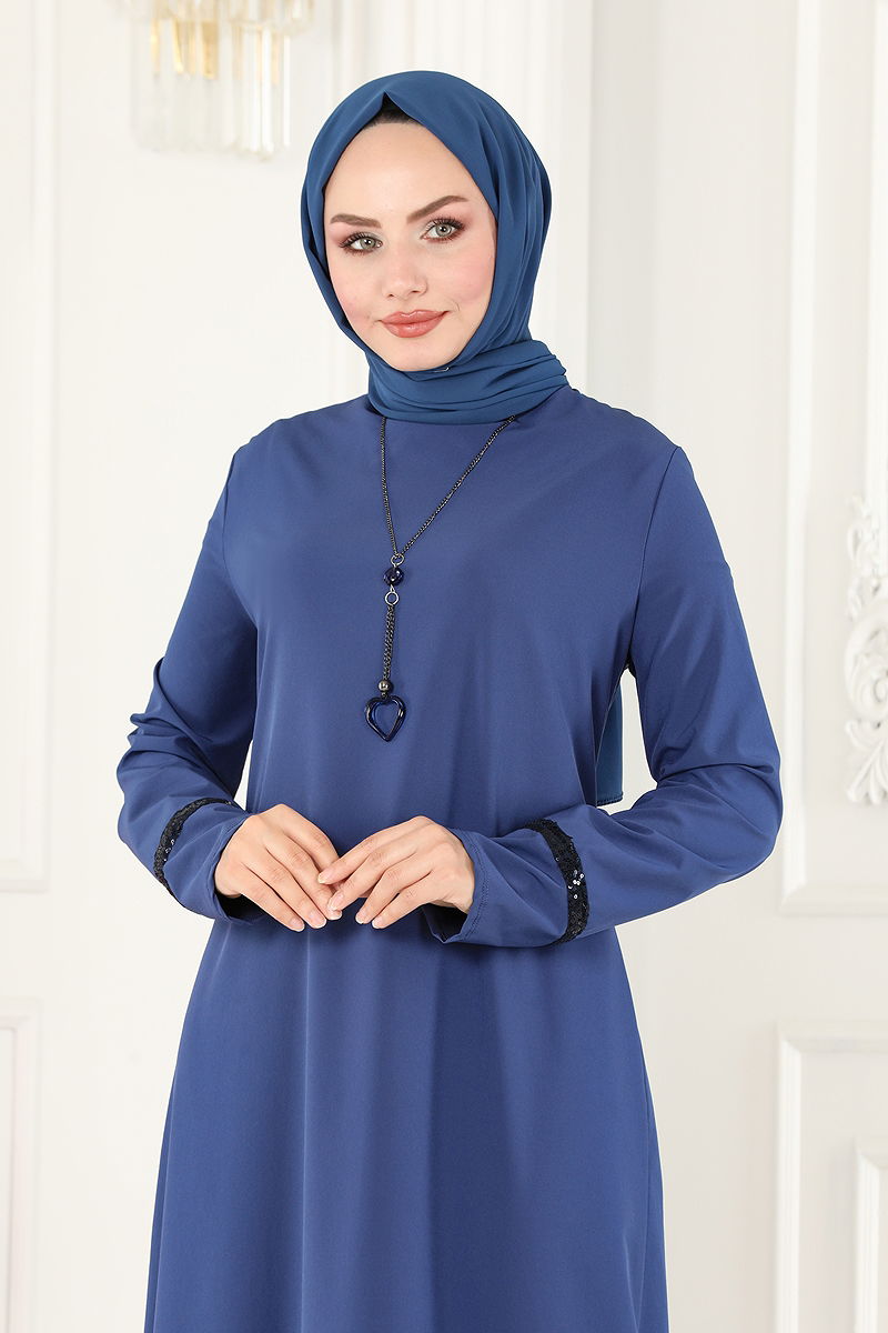 Kolyeli Krep Dress DRESS model is a hijab product. It can be used in Four Season seasons. It should be washed at 30 degrees without squeezing. It is made of first class Krep fabric. The product has a Bicycle collar. The product is buttoned from the back. It is unlined. (The product on the model is size 38.) The necklace is included with the product and may be optionally used.