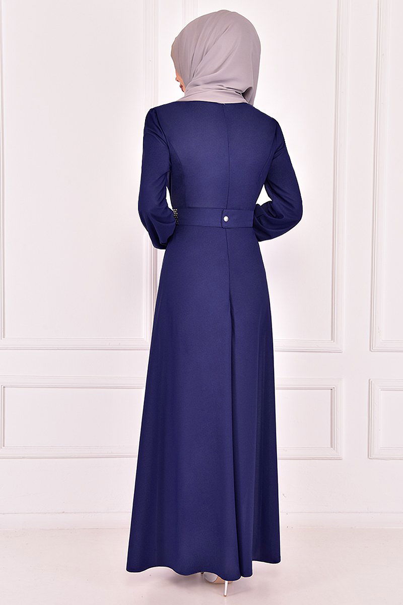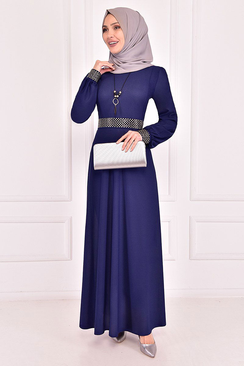 Kolyeli Tesettür Elbise ASM2435-M İndigo