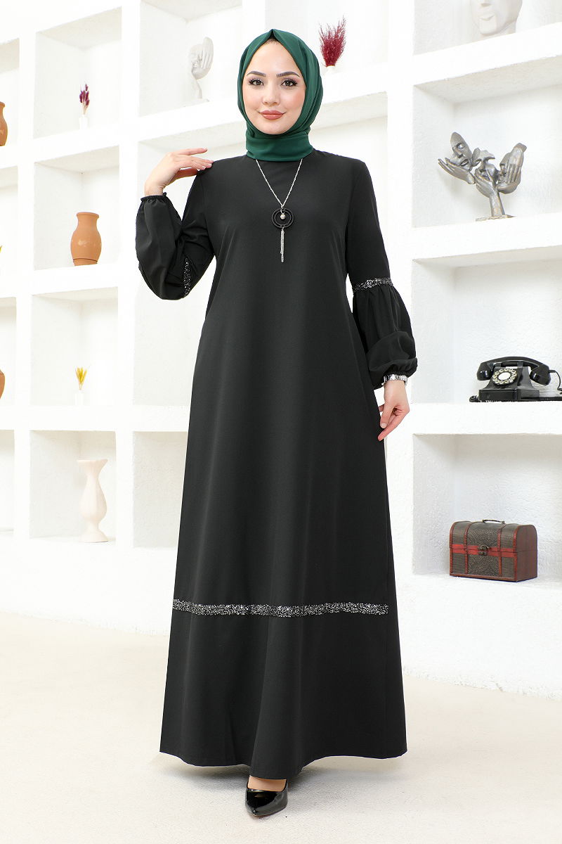 Hijab Dress with Necklace ASM2676-M Black