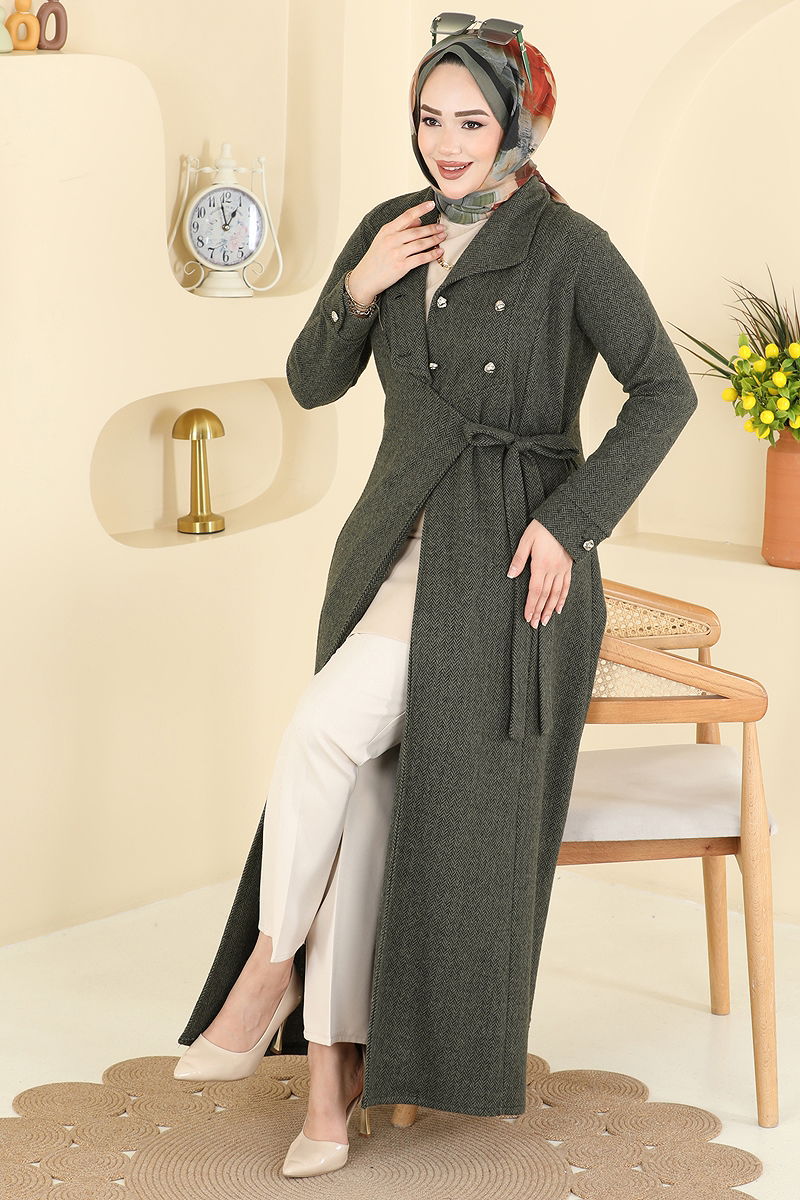 Kruvaze Yaka Balıksırtı Ferace 24025UKB139 Haki
