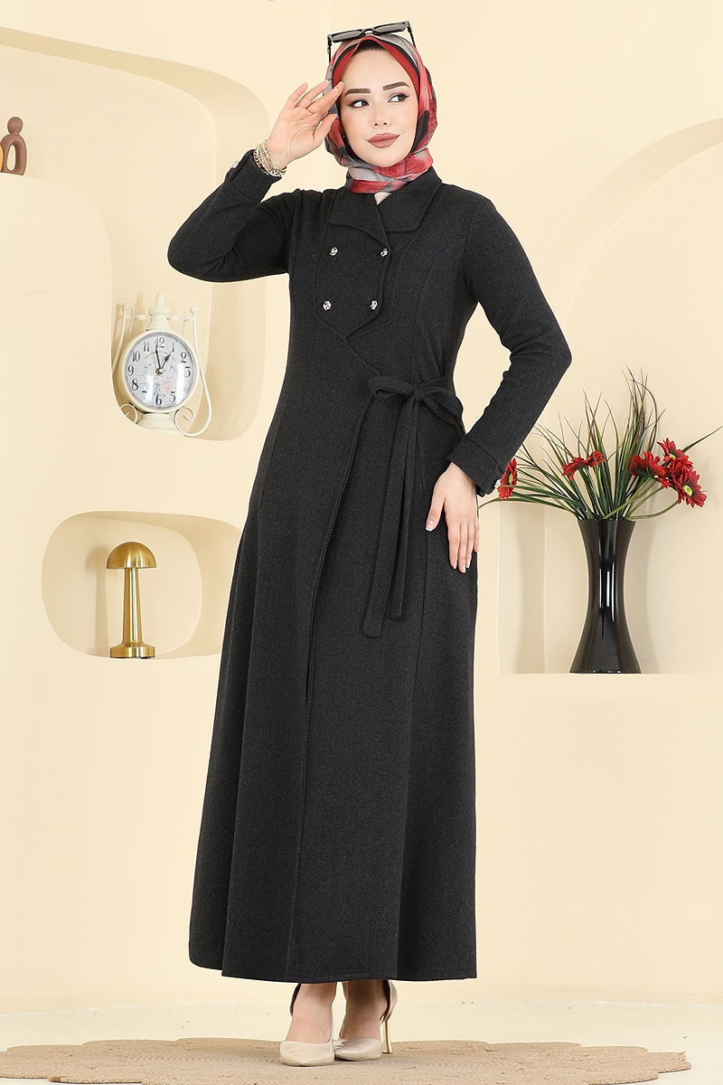 Kruvaze Yaka Balıksırtı Ferace 24025UKB139 Siyah