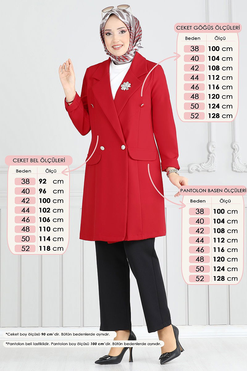 Kruvaze Yaka Ceketli Takım Kırmızı&Siyah