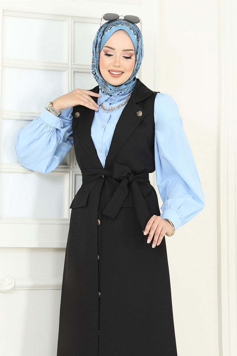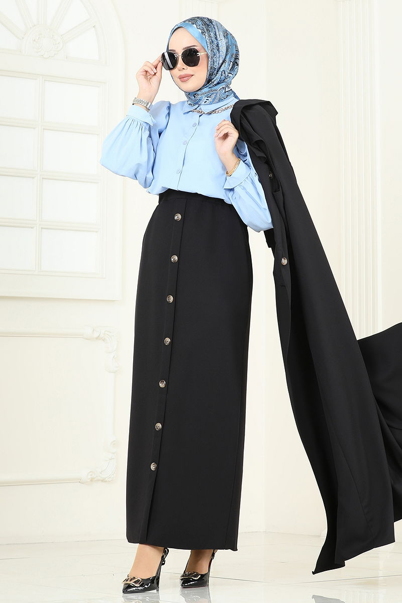 Ürün Özelliği : Yeni sezon tesettür moda ürünüdür. Önden kullanılabilir bir düğmesi bulunmaktadır. Ürün Kruvaze yakadır. Astarsızdır. Etek düğmeleri aksesuardır. Kemer ürüne dahildir, isteğe bağlı kullanılmayabilir. Bluz ürüne dahil değildir. Ürün kullanım amacını göstermek için bluz ile örnek kombin yapılmıştır. Aksesuarlar ürüne dahil değildir. Cep detayı aksesuardır. Etek beli lastiklidir. Konsept fotoğraf çekimlerinden dolayı üründe ton farklılığı olabilir.