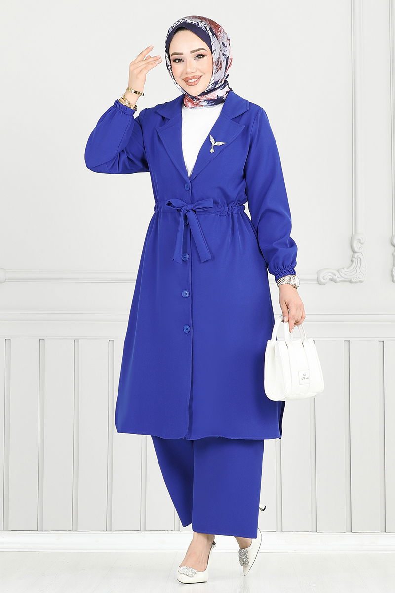 Ürün Özelliği : Yeni sezon tesettür moda ürünüdür. Beli bağcıklıdır. Ürün Kruvaze yakadır. Ürün Önden düğmelidir. Yırtmaçlıdır.. Astarsızdır. Bluz ürüne dahil değildir. Ürün kullanım amacını göstermek için bluz ile örnek kombin yapılmıştır. Aksesuarlar ürüne dahil değildir. Pantolon beli lastiklidir. Manşet lastiklidir. Konsept fotoğraf çekimlerinden dolayı üründe ton farklılığı olabilir.