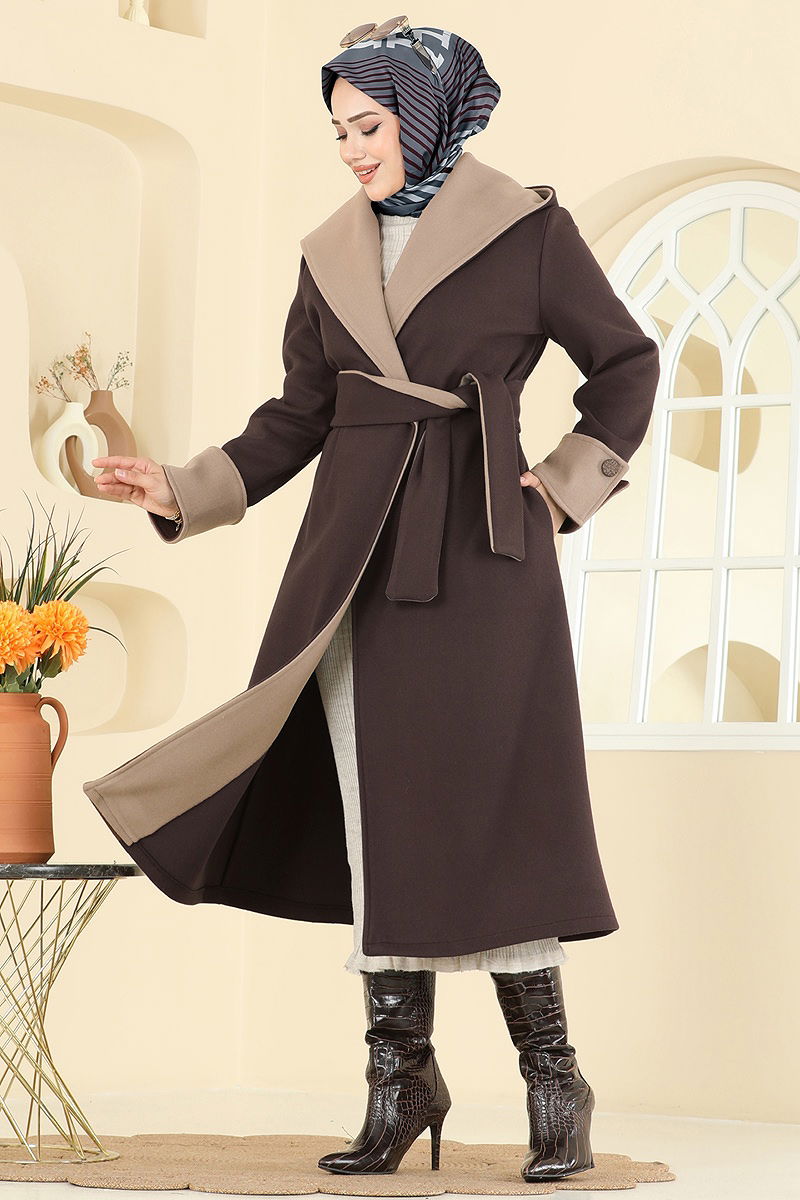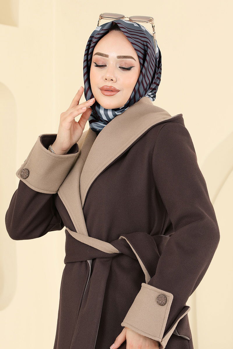 Kruvaze Yaka Kaşe Kaban Acı Kahve