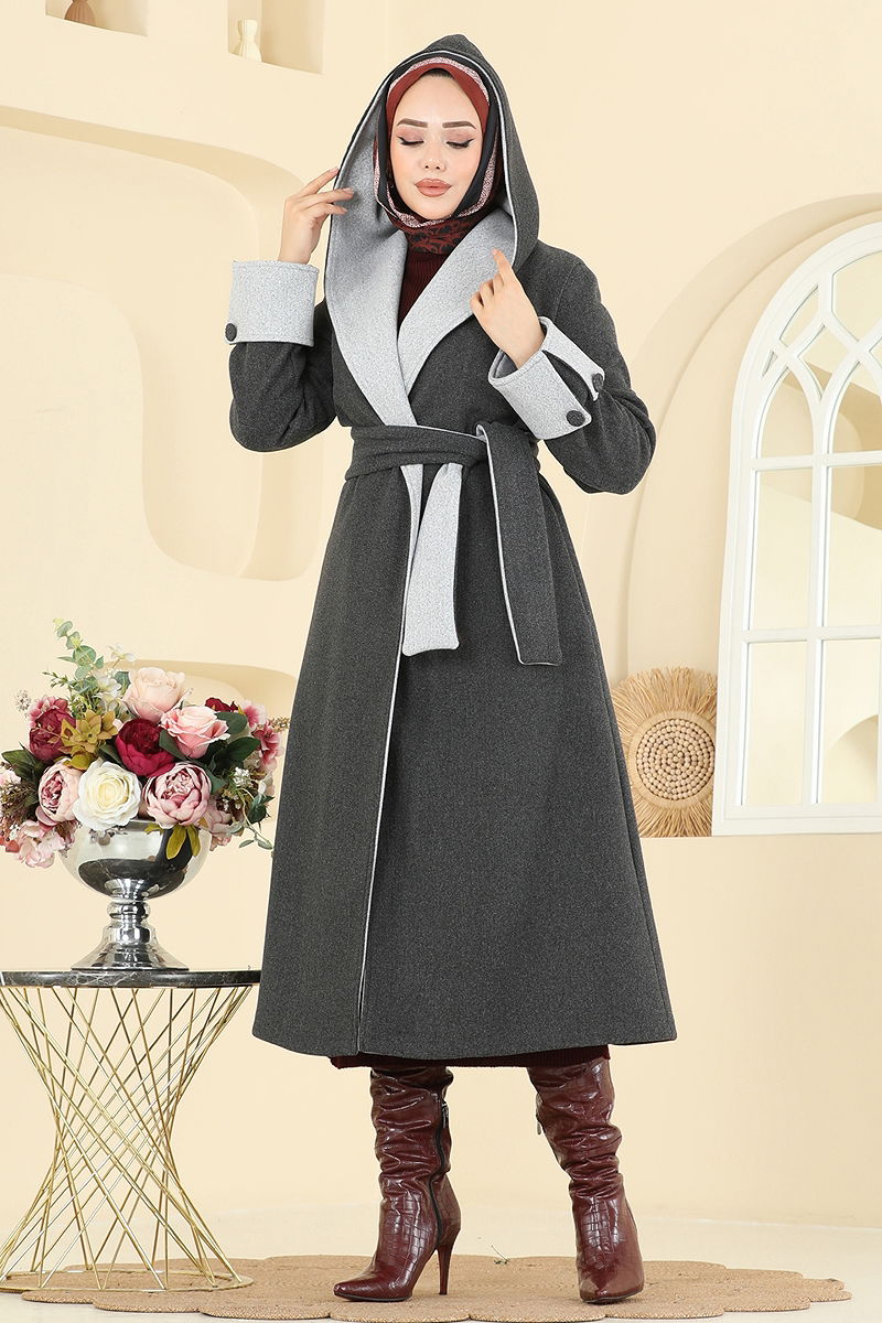 Kruvaze Yaka Kaşe Kaban Antrasit