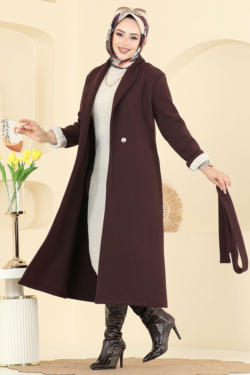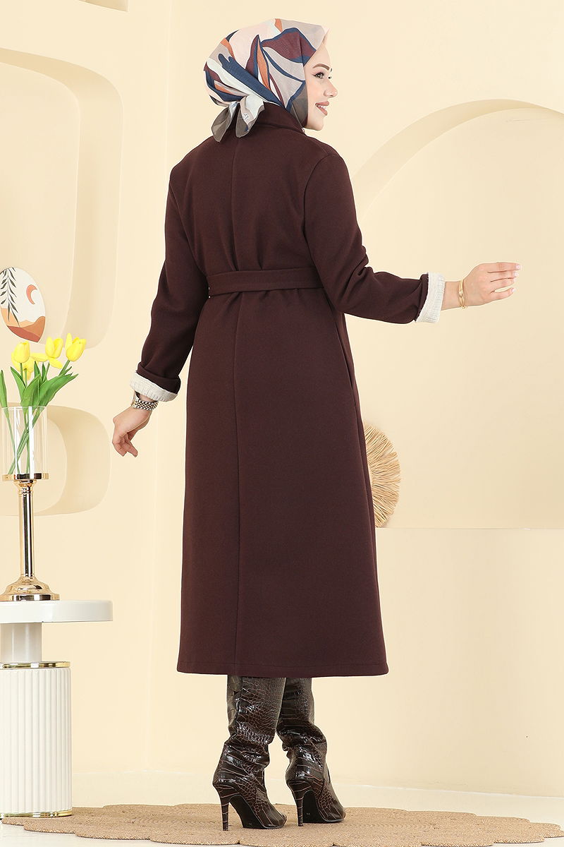 Kruvaze Yaka Kaşe Kaban Acı Kahve