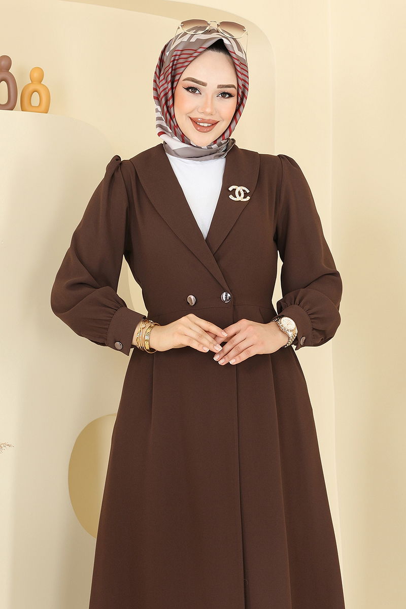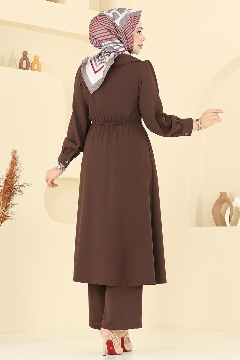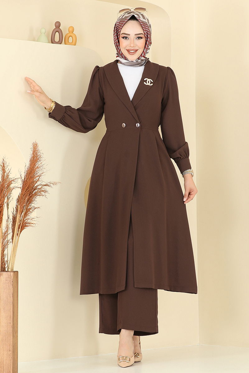 Kruvaze Yaka Krep Takım Kahve
