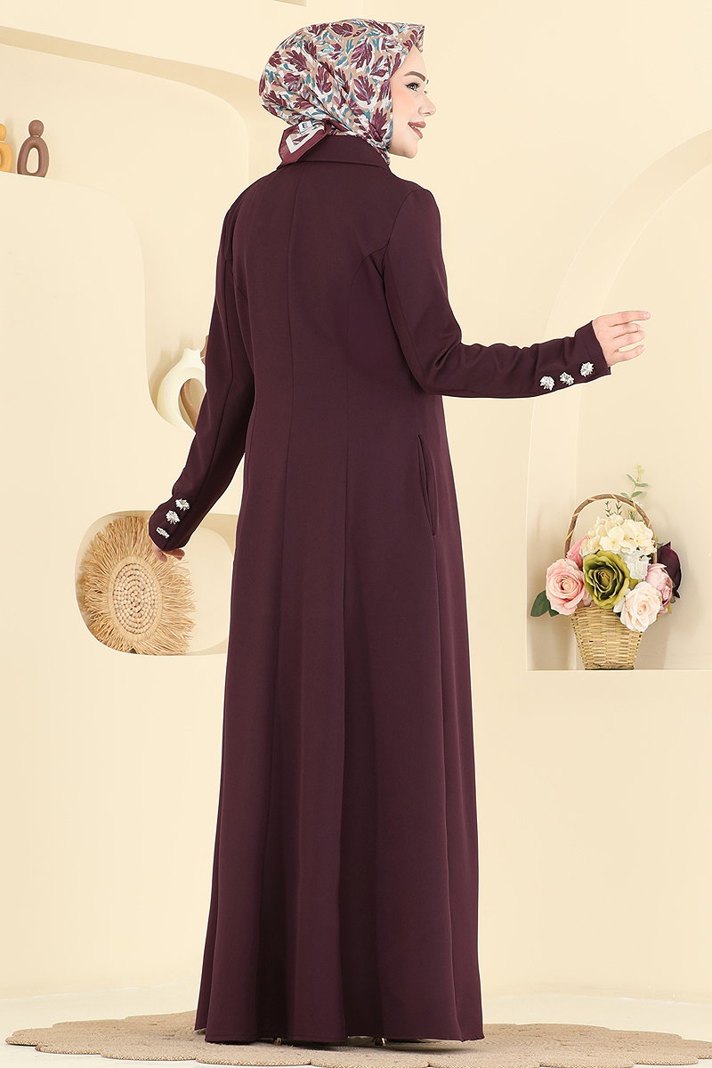 Kruvaze Yaka Kuşaklı Ferace 2846SLK540 Açık Mürdüm