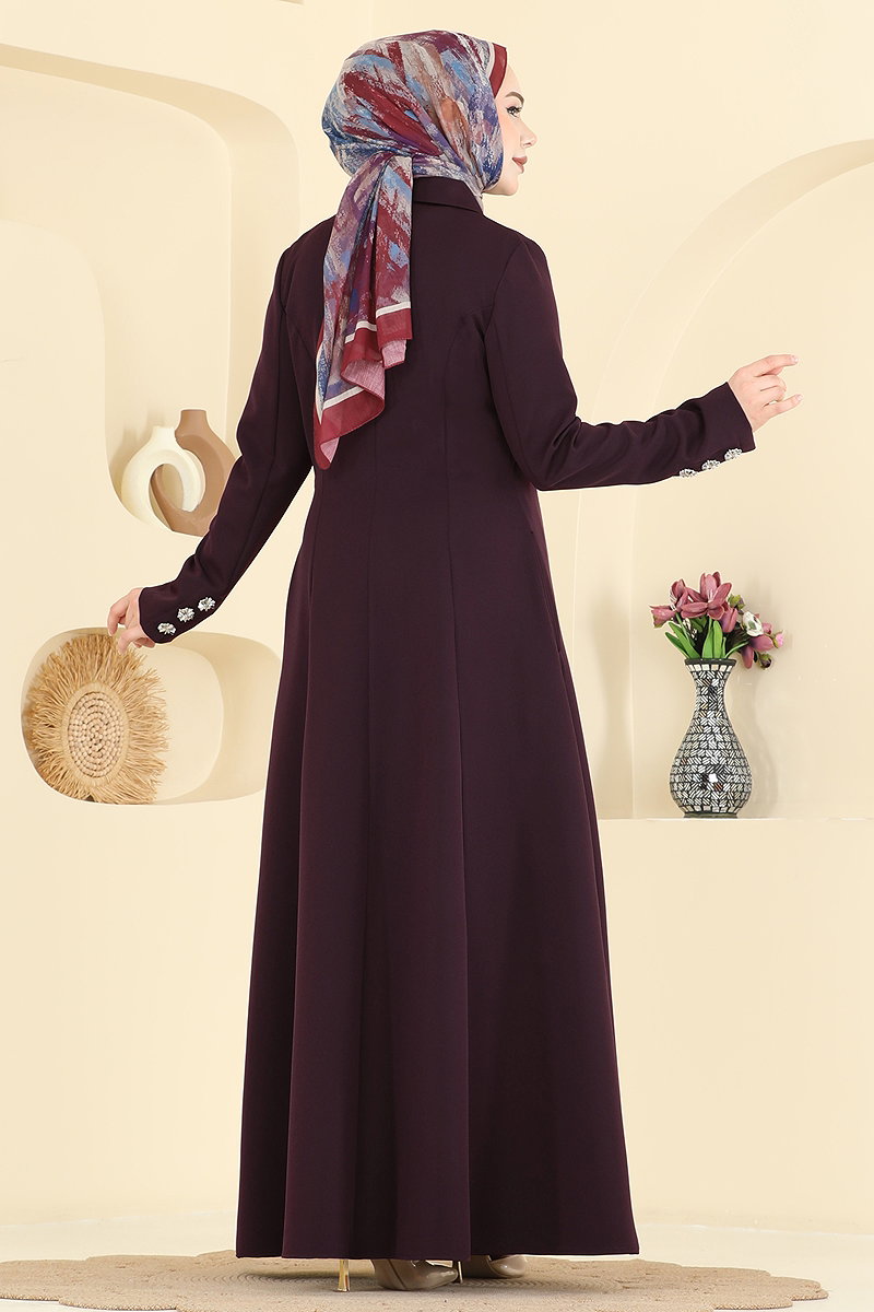 Kruvaze Yaka Kuşaklı Ferace 2846SLK540 Koyu Mürdüm