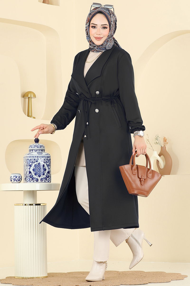 يوجد زر مزدوج يمكن استخدامه من الأمام. يتميز بخصر ذو أربطة. المنتج لديه ياقة مفتوحة. غير مبطنة. الجيب متاح. السوار مطاطي. قد يكون هناك اختلاف في الدرجة اللونية في المنتج بسبب التقاط الصور الفوتوغرافية.