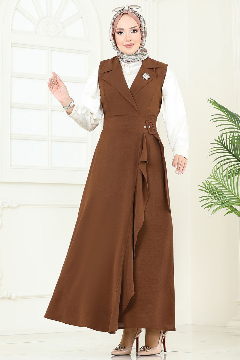 Ürün Özelliği : Yeni sezon tesettür moda ürünüdür. Yandan bağlanabilir kemeri bulunmaktadır. Ürün Kruvaze yakadır. Ürün Etek kısmından volanlıdır. Astarsızdır. Ürün Yandan fermuarlıdır. Kemer Ürüne Dikilidir. Bluz ürüne dahil değildir. Ürün kullanım amacını göstermek için bluz ile örnek kombin yapılmıştır. Aksesuarlar ürüne dahil değildir. Konsept fotoğraf çekimlerinden dolayı üründe ton farklılığı olabilir.
