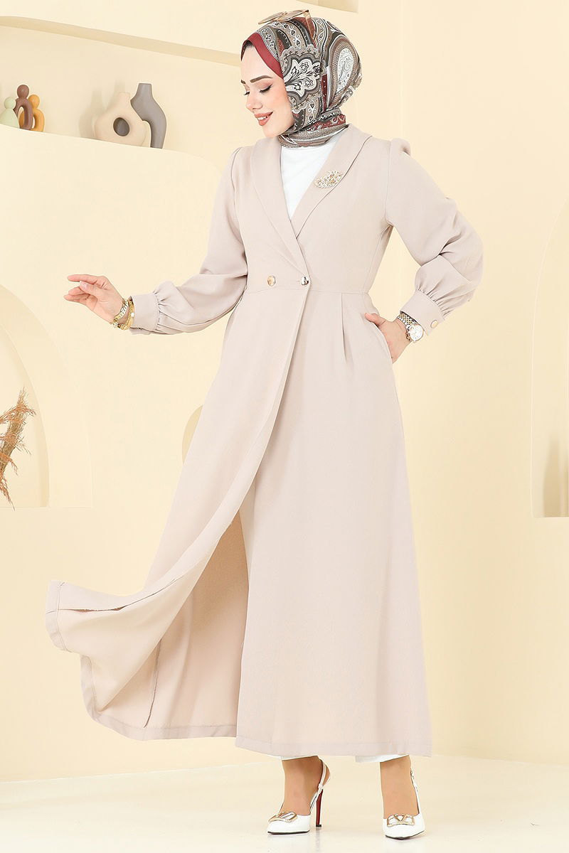 Kruvaze Yaka Tesettür Kap Taş