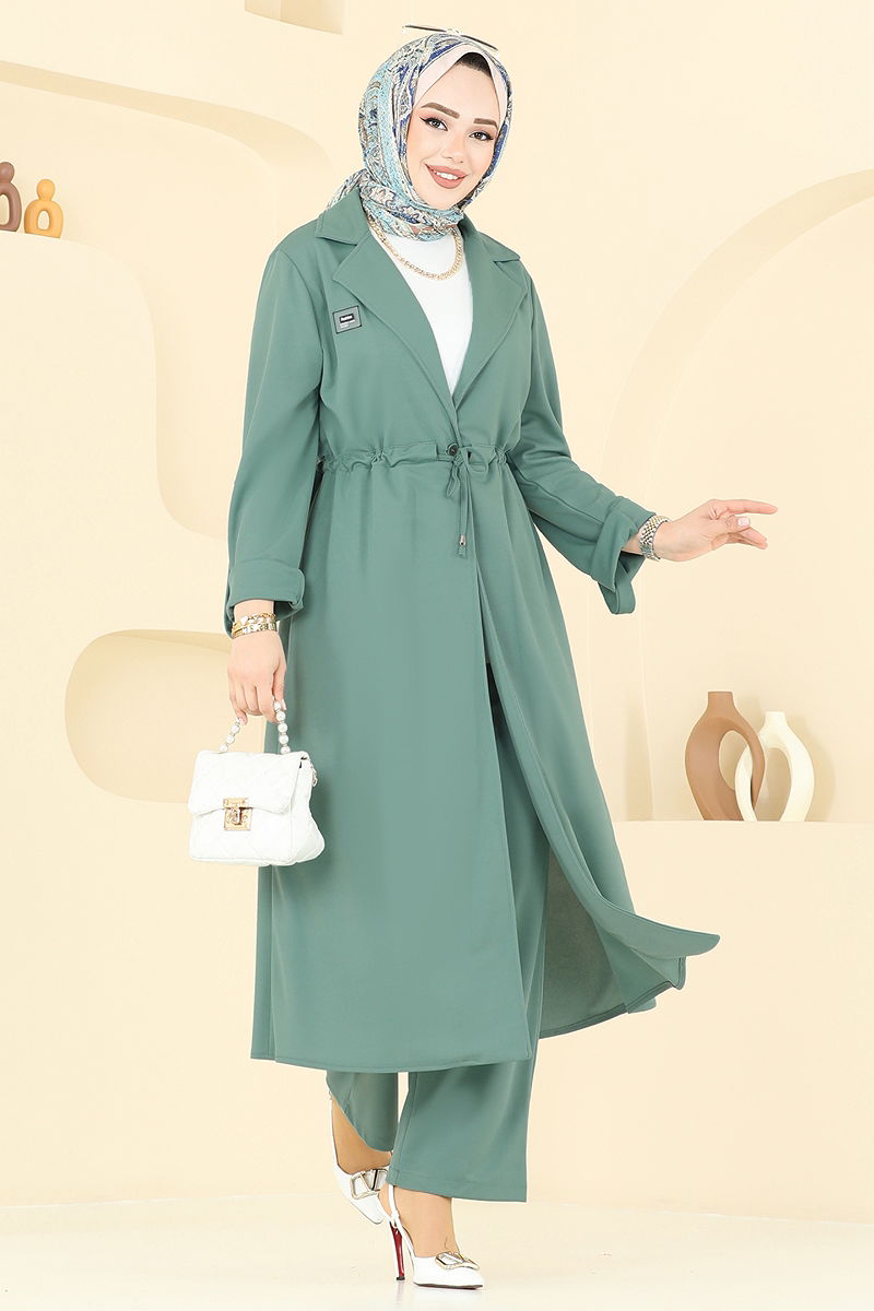 Kruvaze Yaka Tesettür Takım Mint