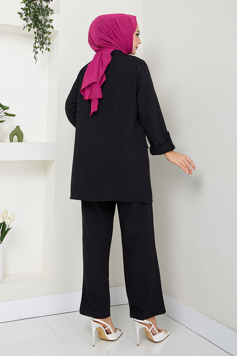 المنتج لديه ياقة مفتوحة. المنتج به أزرار من الأمام. غير مبطنة.. تفاصيل الجيب عبارة عن إكسسوارات. خصر البنطال مرن. أزرار الكفة نشطة. قد يكون هناك اختلاف في الدرجة اللونية في المنتج بسبب التقاط الصور الفوتوغرافية.
