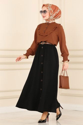 Düğmeli Aerobin Etekli Takım ASM4571 Taba&Siyah