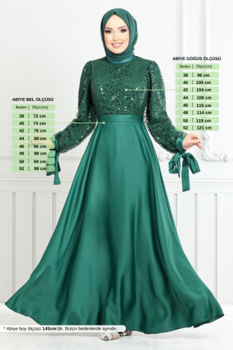 Pul Detaylı Saten Abiye 5670END900-M Zümrüt