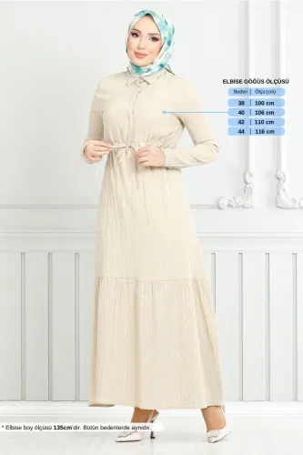 Beli Bağcıklı Tesettür Elbise 779ASE1099-M Taş