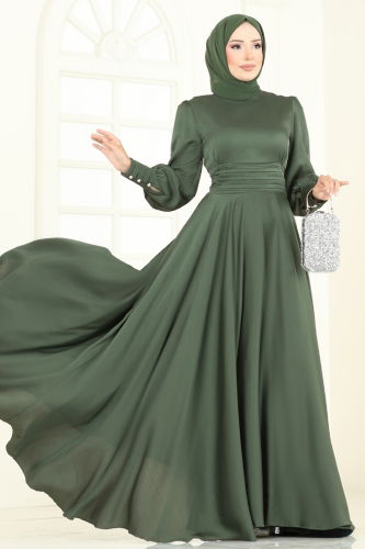 Kuşak Detaylı Abiye Elbise 5697EDF311 Haki