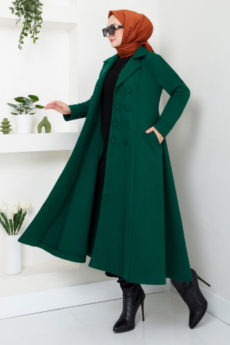 Düğmeli Kaşe Kaban MSL5455-M Zümrüt