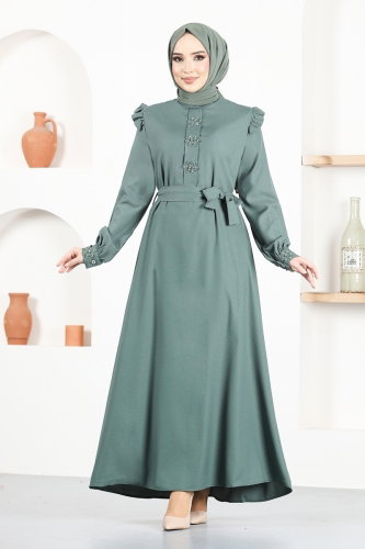 Yaprak Desen Şifon Elbise 5205AL357 Petrol