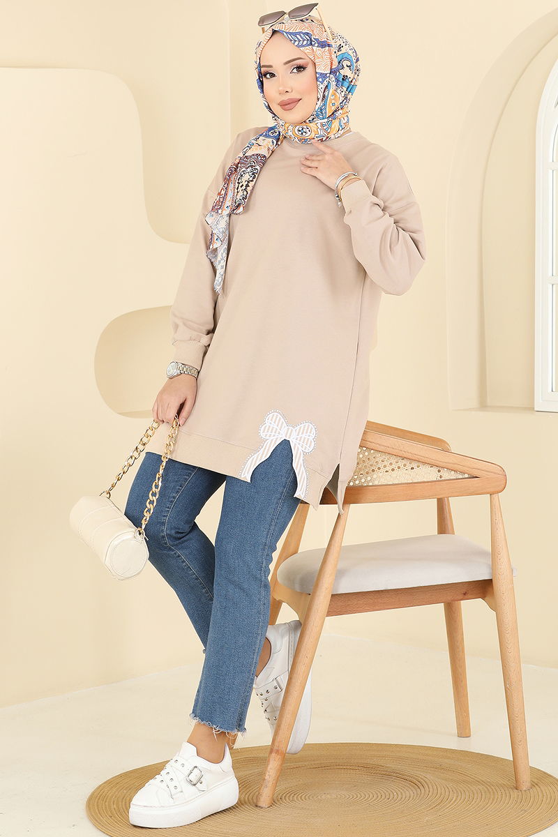 Kurdele Yırtmaçlı İki İp Tunik 7095TEG847 Taş