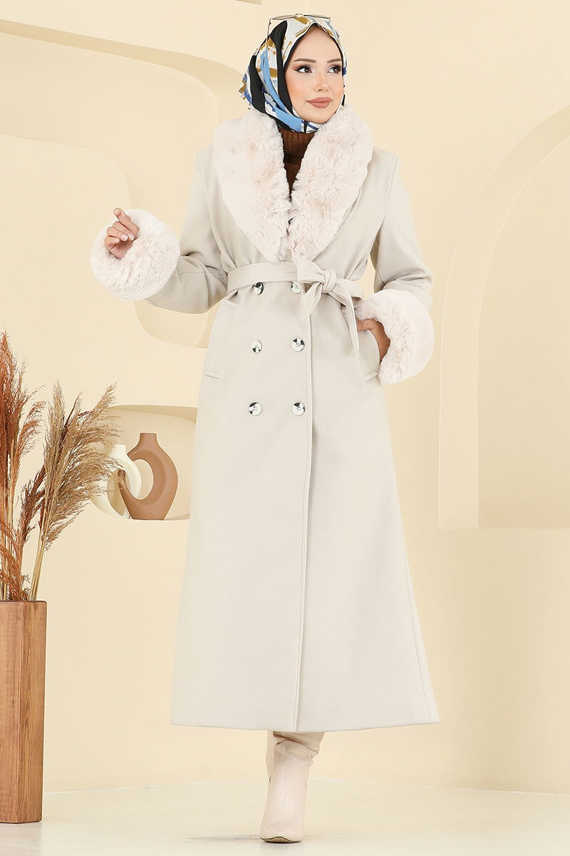 Ürün Özelliği : Yeni sezon tesettür moda ürünüdür. Ürün Kruvaze yakadır. Ürün Önden düğmelidir. Astarlıdır. Kürk ve kemer ürüne dahildir, isteğe bağlı kullanılmayabilir. Kemer ürüne dahildir, isteğe bağlı kullanılmayabilir. Cep mevcuttur. Manşeti kürklüdür.Konsept fotoğraf çekimlerinden dolayı üründe ton farklılığı olabilir.