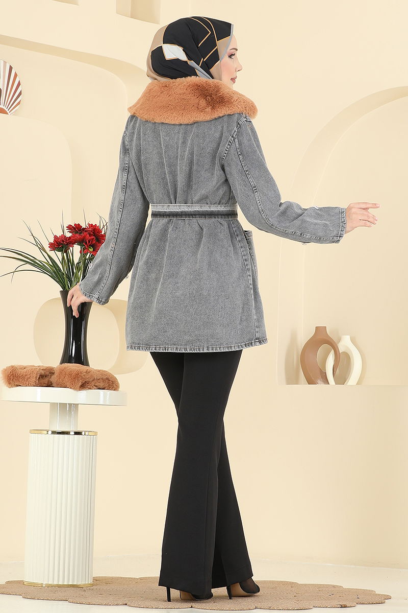 Kürk Detaylı Kot Kap 4086ORG1169 Gri Kot