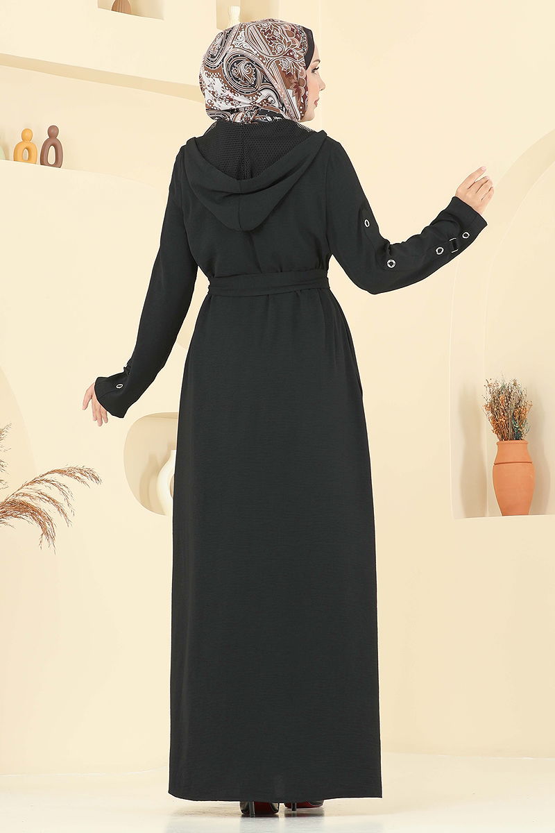 Kuş Gözü Detaylı Ferace Elbise Siyah