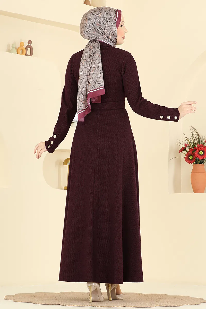 Kuşak Detaylı Balıksırtı Elbise 24097UKBK1160 Bordo