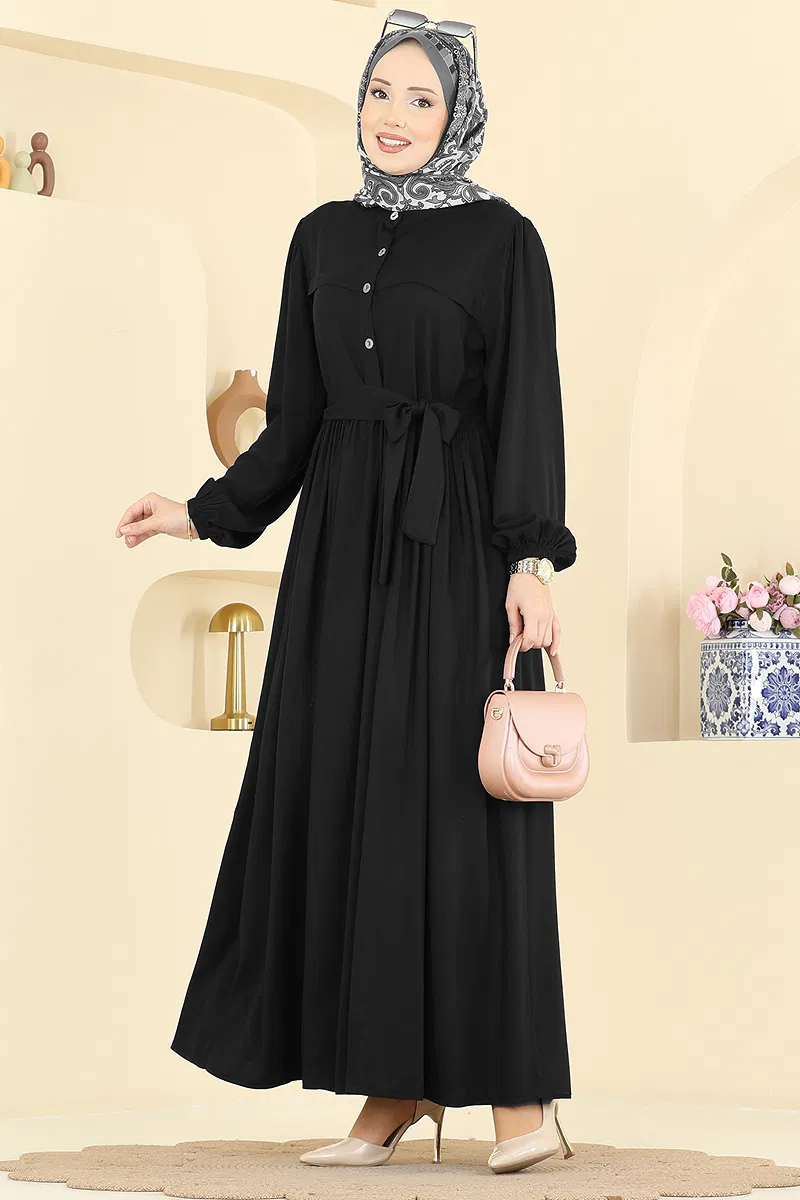 Zarif ve modern tasarımı ile dikkat çeken Kuşak Detaylı Belmando Elbise, tesettür giyimde şıklığı ve rahatlığı bir arada sunuyor. Dört mevsim rahatlıkla kullanabileceğiniz bu elbise, Belmando kumaşı sayesinde uzun ömürlü kullanım vaat ediyor. Hassas yıkama ile 30 derecede temizlenebilen elbise, yarım hakim yaka ve ön düğmeli tasarımıyla pratik bir kullanım sağlar. Astarsız yapısı ve manşet lastik detayları ile konforu ön planda tutan bu model, ayrıca dahil olan ve isteğe bağlı çıkarılabilir kuşak kemer ile tamamlanmıştır.