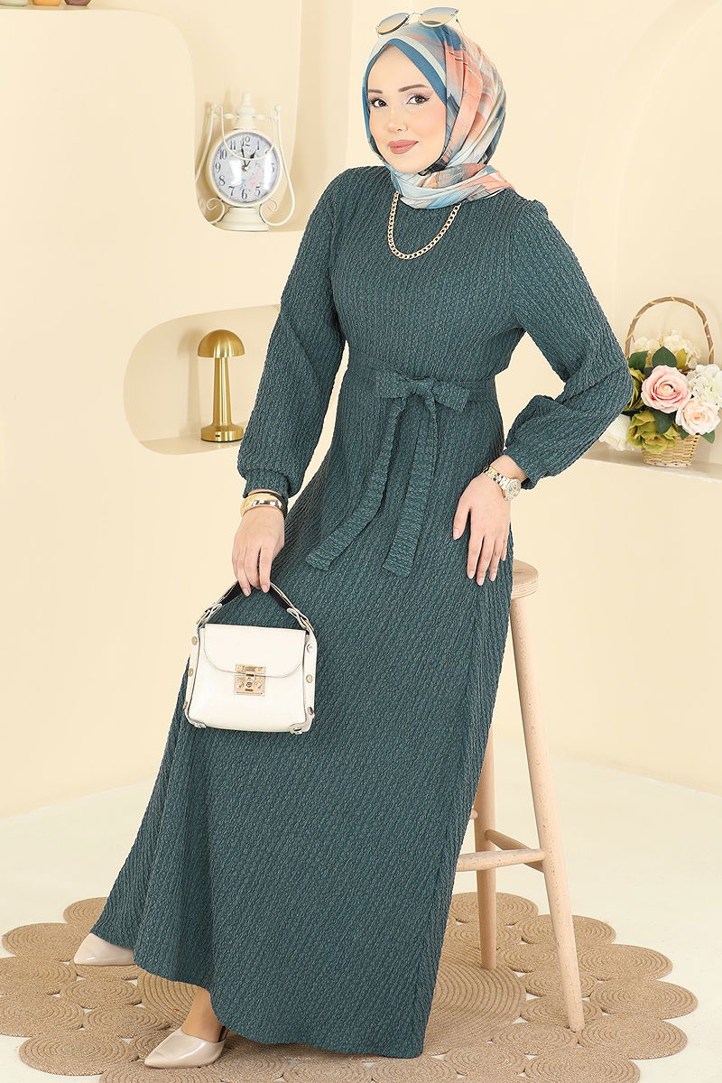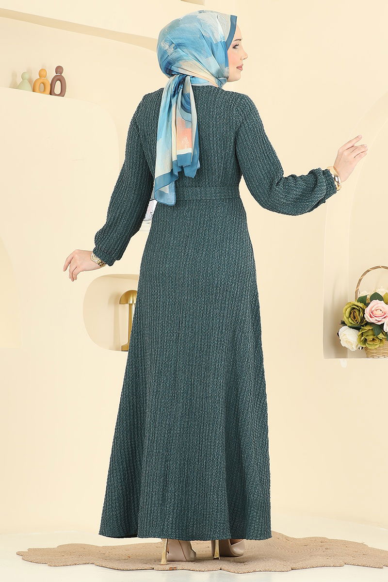 Kuşak Detaylı Bürümcük Elbise 4575ERK1158 Zümrüt