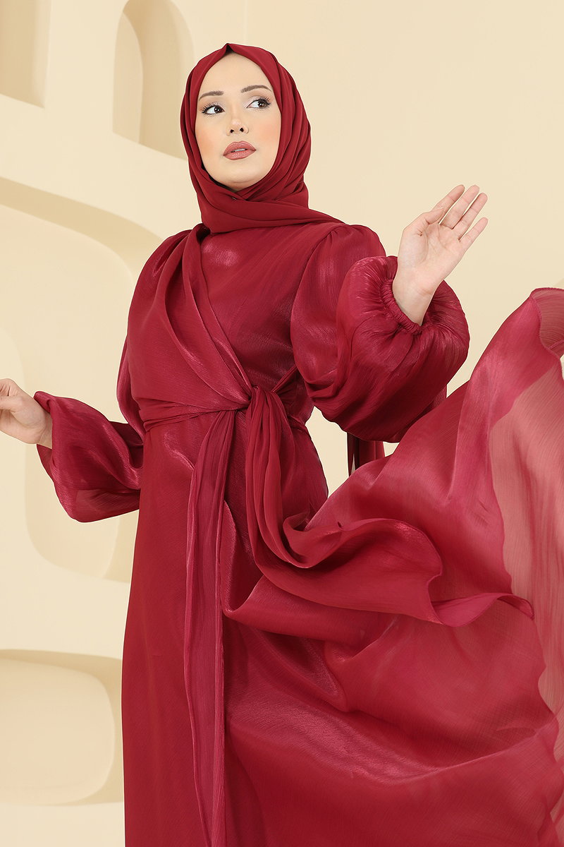 Kuşak Detaylı Şık Abiye 6219BSK463 Bordo