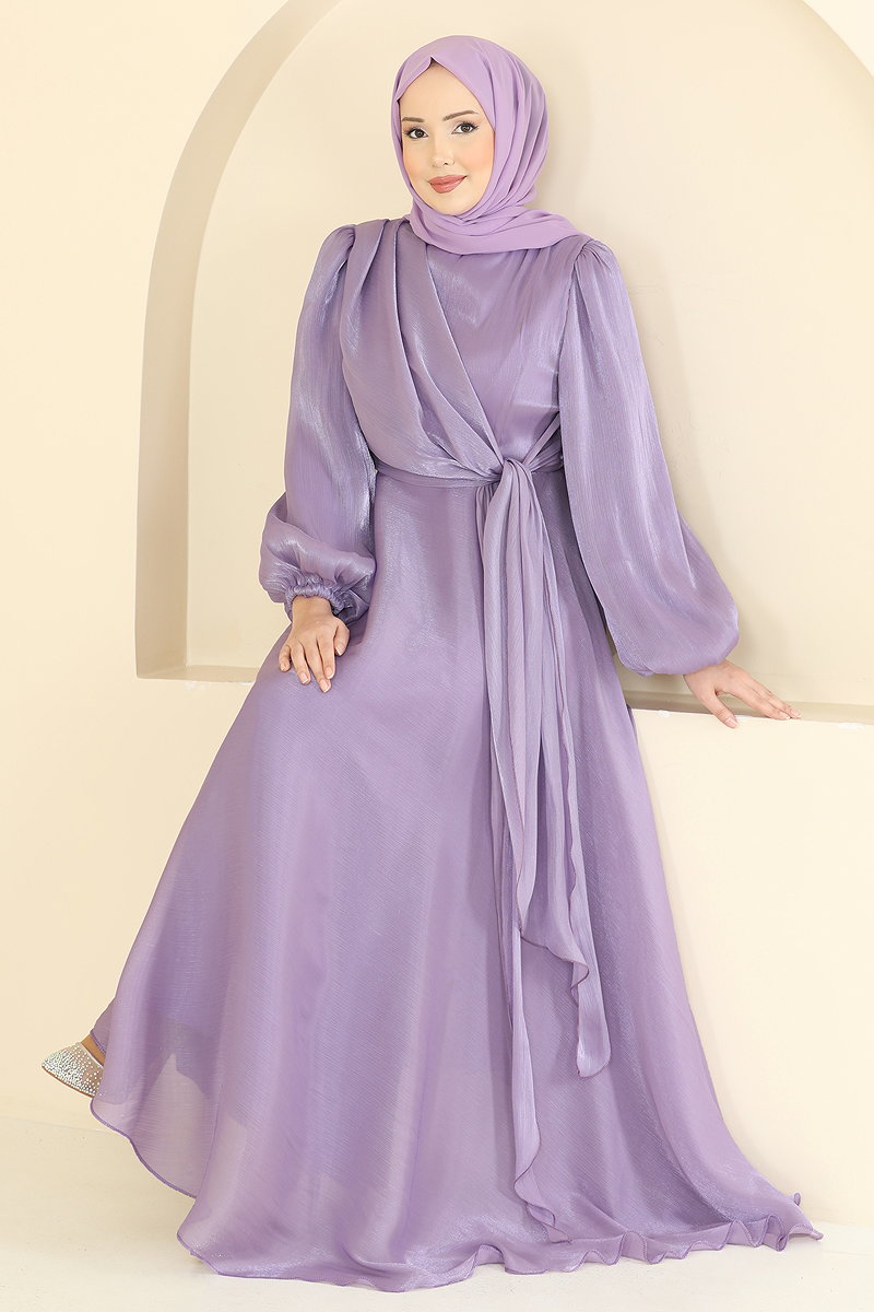 Kuşak Detaylı Şık Abiye 6219BSK463 Lila