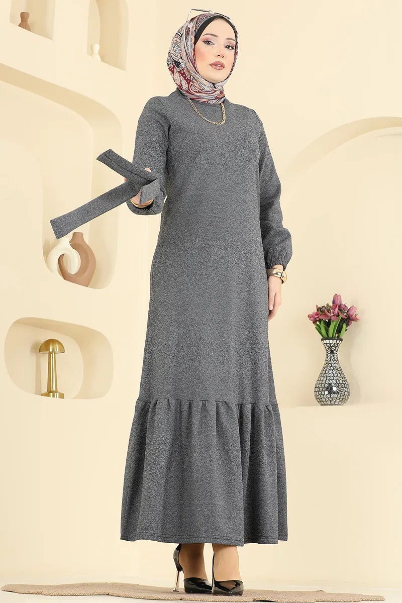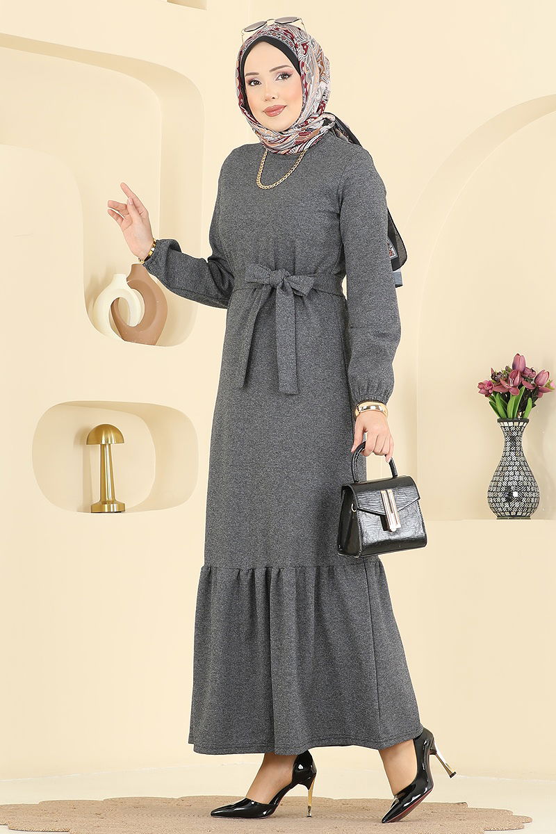 Kuşak Detaylı Tivit Elbise 702PM271 Antrasit