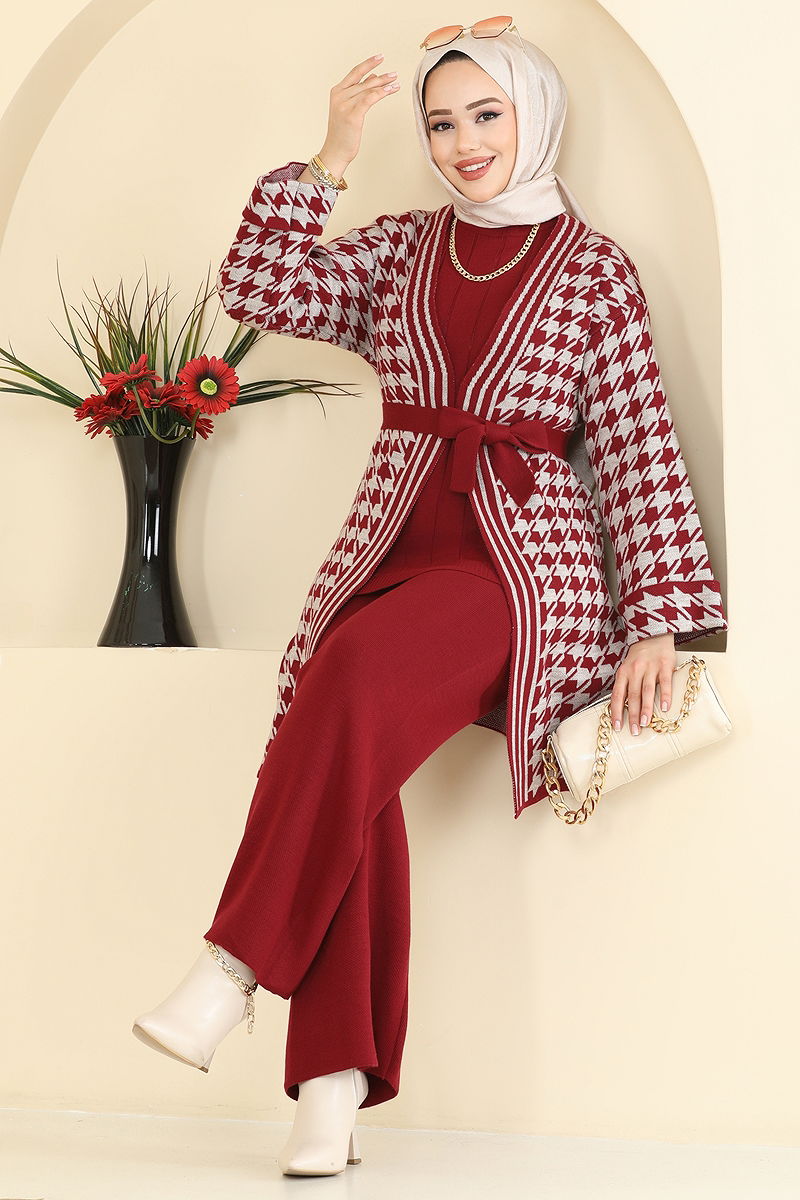 Kuşak Detaylı Üçlü Takım 2893KLB1050 Bordo