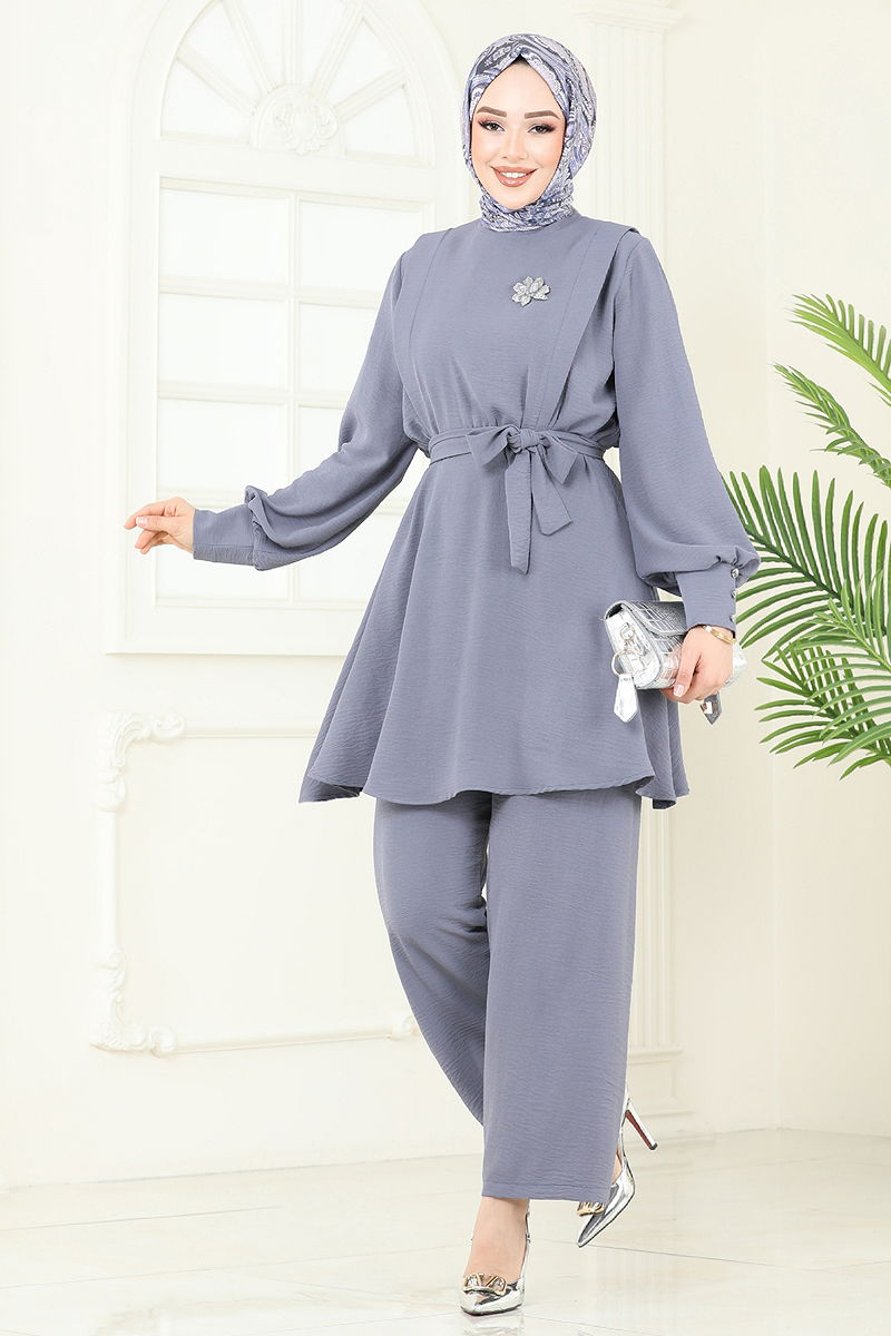 Kuşaklı Aerobin Tesettür Takım 8018TRT545 Gri