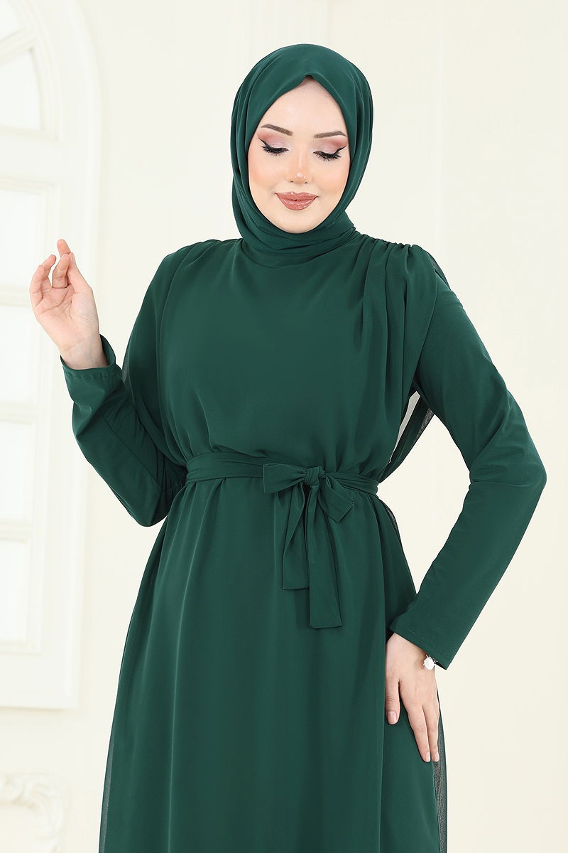 المنتج لديه ياقة دائرية. غير مبطنة. المنتج به سحاب في جزء من الخلف. الحزام متضمن، ،يمكن استخدامها حسب الرغبة يتم خياطة الرداء على المنتج. الملحقات غير متضمنة. قد يكون هناك اختلاف في الدرجة اللونية في المنتج بسبب التقاط الصور الفوتوغرافية.